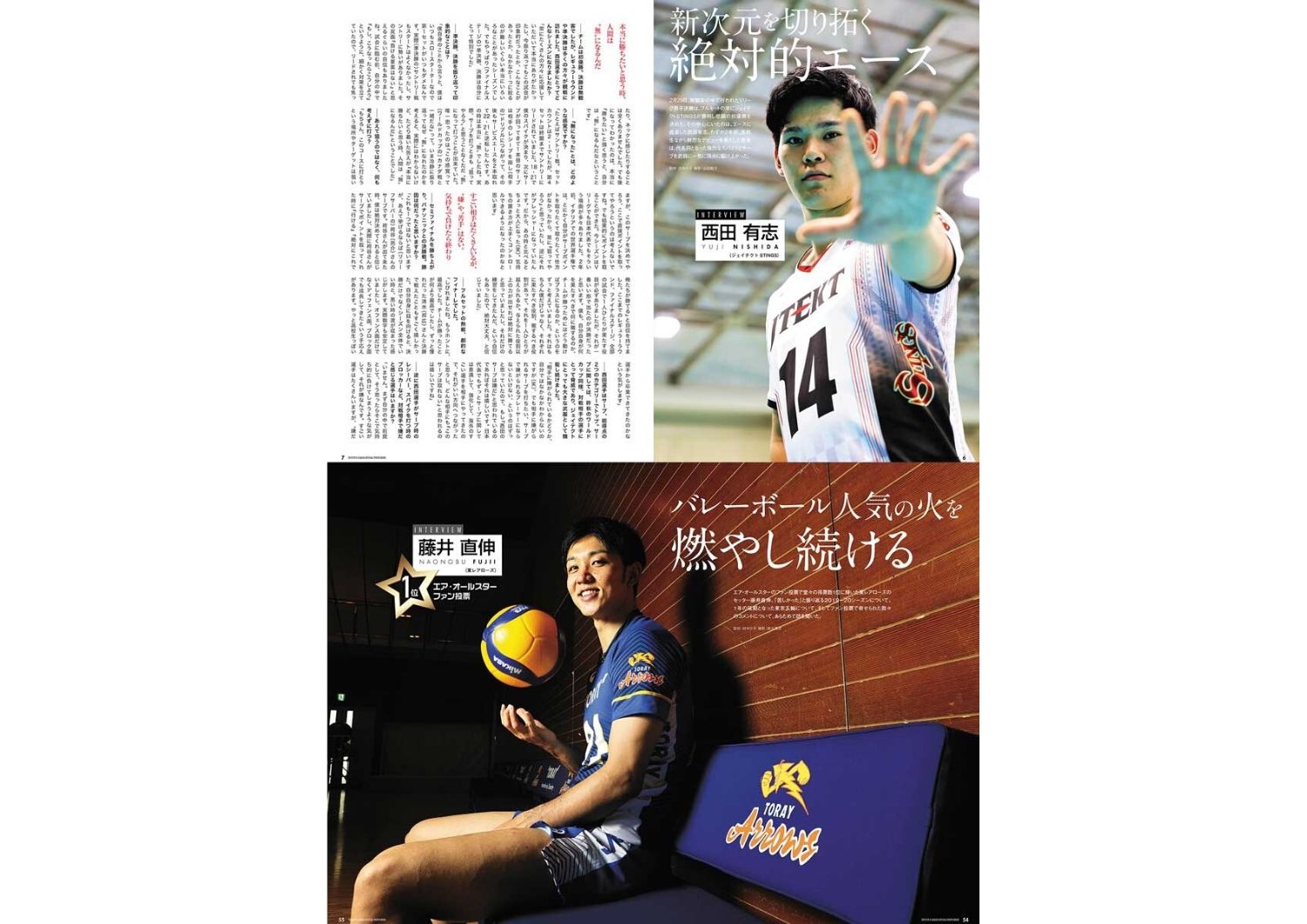巻頭企画では、V1優勝チームのキーパーソンとして西田有志選手(ジェイテクトSTINGS)、小幡真子選手(JTマーヴェラス)のインタビューを掲載。