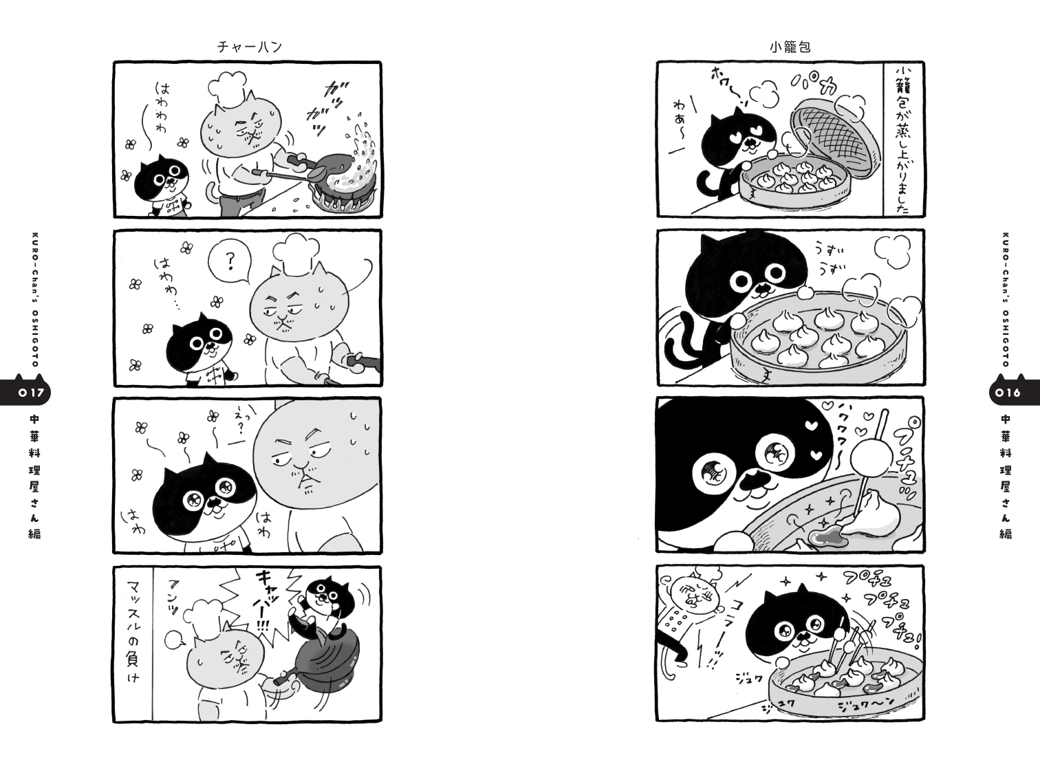 チビねこクロちゃんが失敗しながらもおしごとをがんばる4コマに