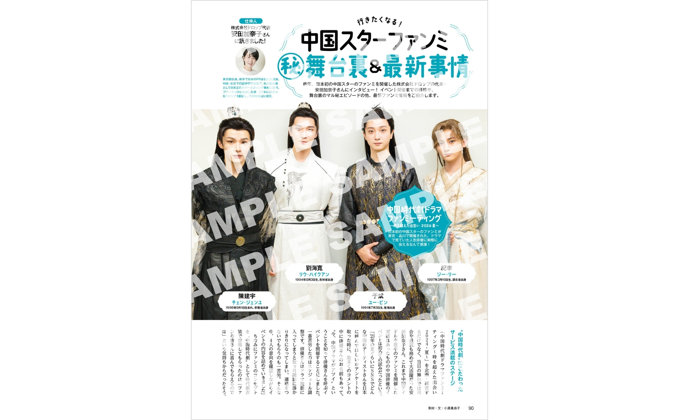 さらに、中国本土での各種リアルランキングや編集部独自の切り口による妄想ランキング、ファン目線であらためて推しの魅力を語り明かす座談会企画を掲載する他、大ヒットドラマの聖地巡礼ガイドや中国スターのファンミーティングマル秘&最新事情、日本で体験できる中華風「ワンホンメイク」の体験リポートなど、みんなの推し活が充実する企画盛りだくさんの内容でお届けします。