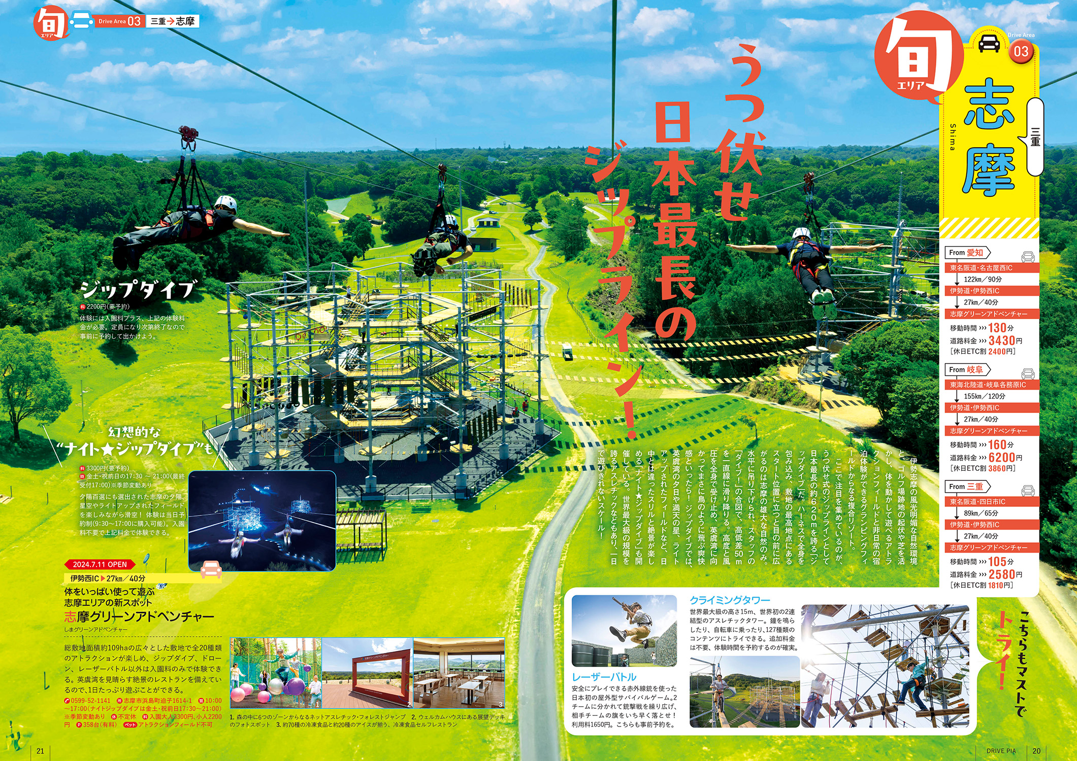 リニューアルオープンでさらに魅力マシマシの「竹島水族館」、うつ伏せ日本最長のジップラインが話題沸騰の「志摩グリーンアドベンチャー」、無料で体験できるBMXパークが人気の各務原「わたしのPARK」などなど、いますぐ行っておきたい新スポット&旬スポットが満載です!