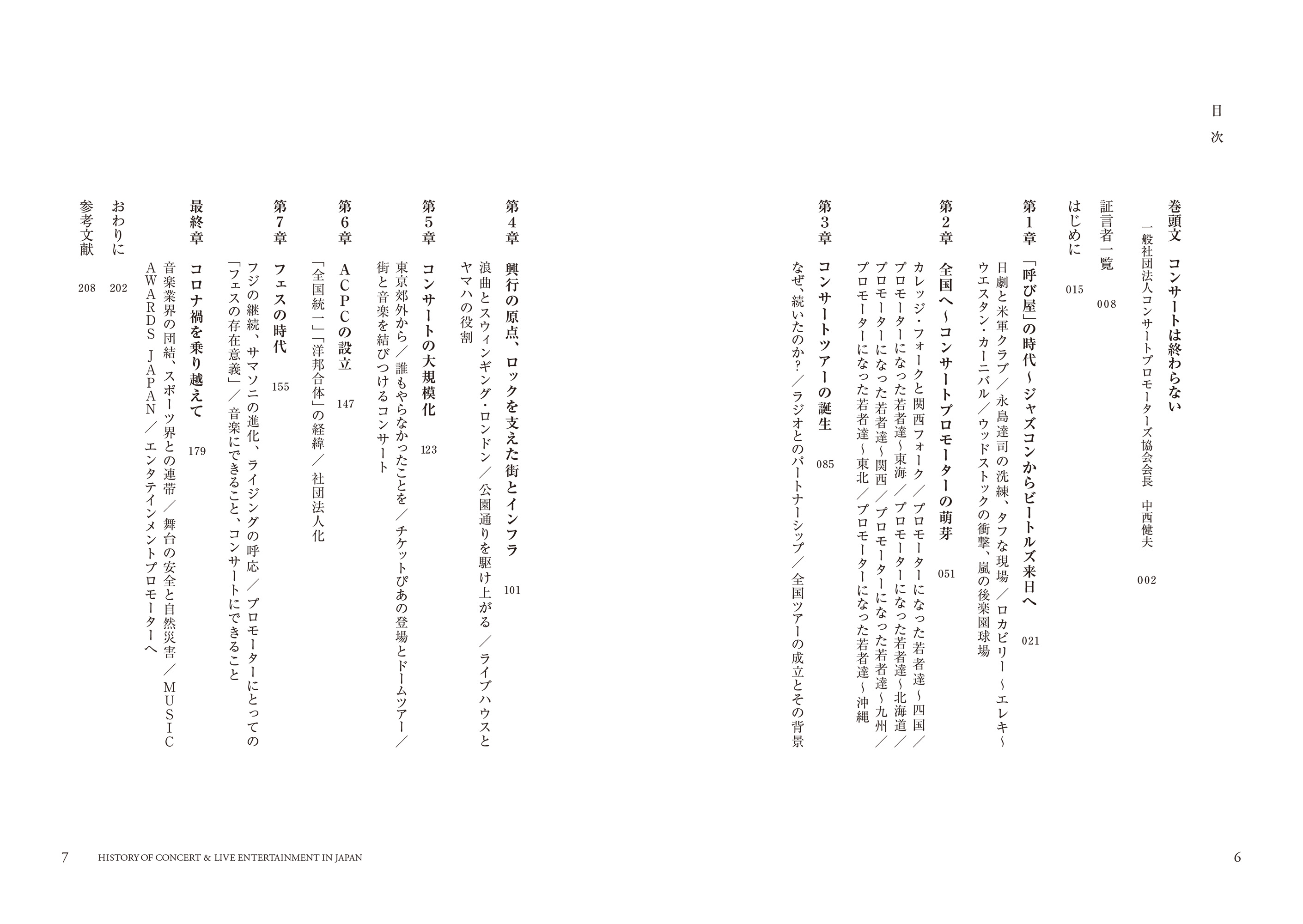 また、全国を代表する13名のコンサートプロモーターによる証言には、さまざまな命題に現場で対峙してきたリアルな信念と思いがうかがえ、チケット転売問題、自然災害とコロナ禍などの課題も含め、ライブ・エンタテインメントの現在地を認識し、ライブ・エンタテインメントの未来へと思いをはせる1冊となりました。