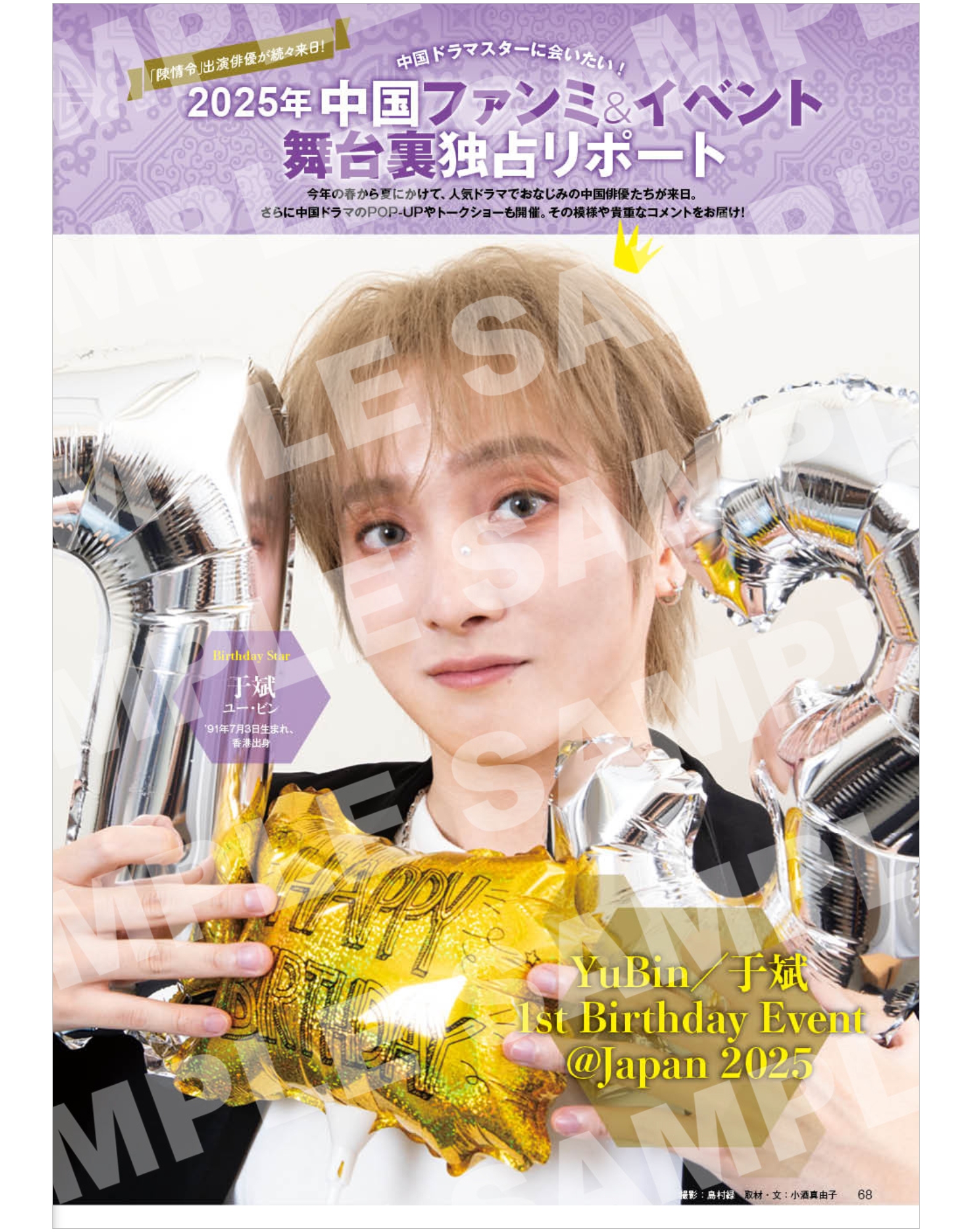 さらに、「陳情令」キャストのユー・ビン(于斌)の撮りおろしショットがダブル表紙を飾る!