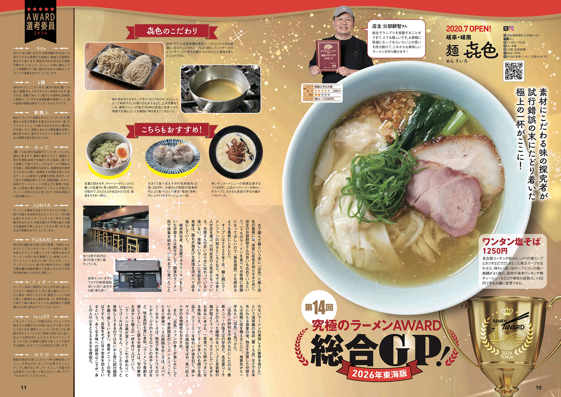 第14回を迎えた恒例の「究極のラーメンAWARD」では、東京の名店のDNAを受け継ぐ岐阜の注目店「麺 㐂色」が総合グランプリを受賞。GP受賞を記念したコラボ限定麺の提供も決定しました!