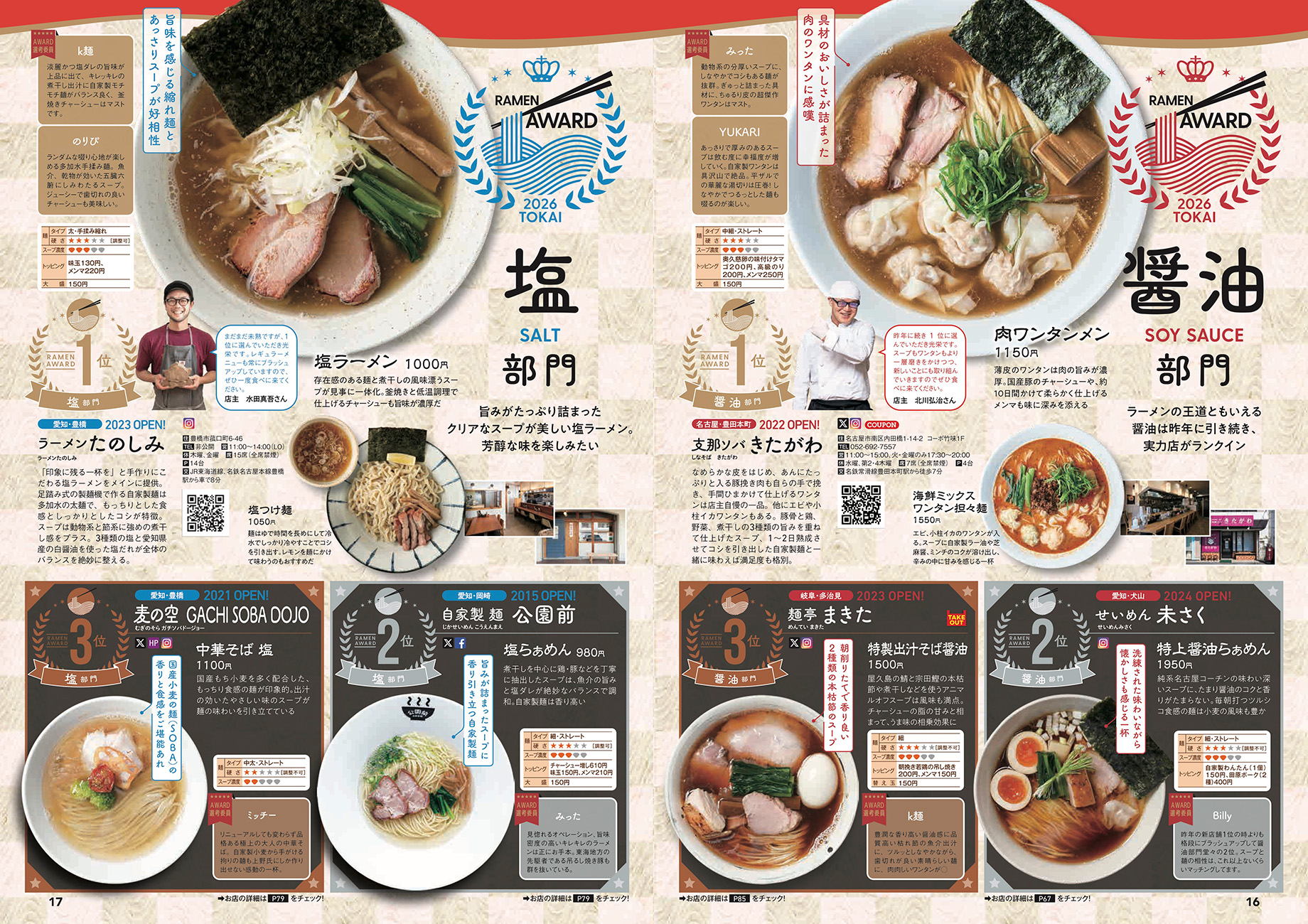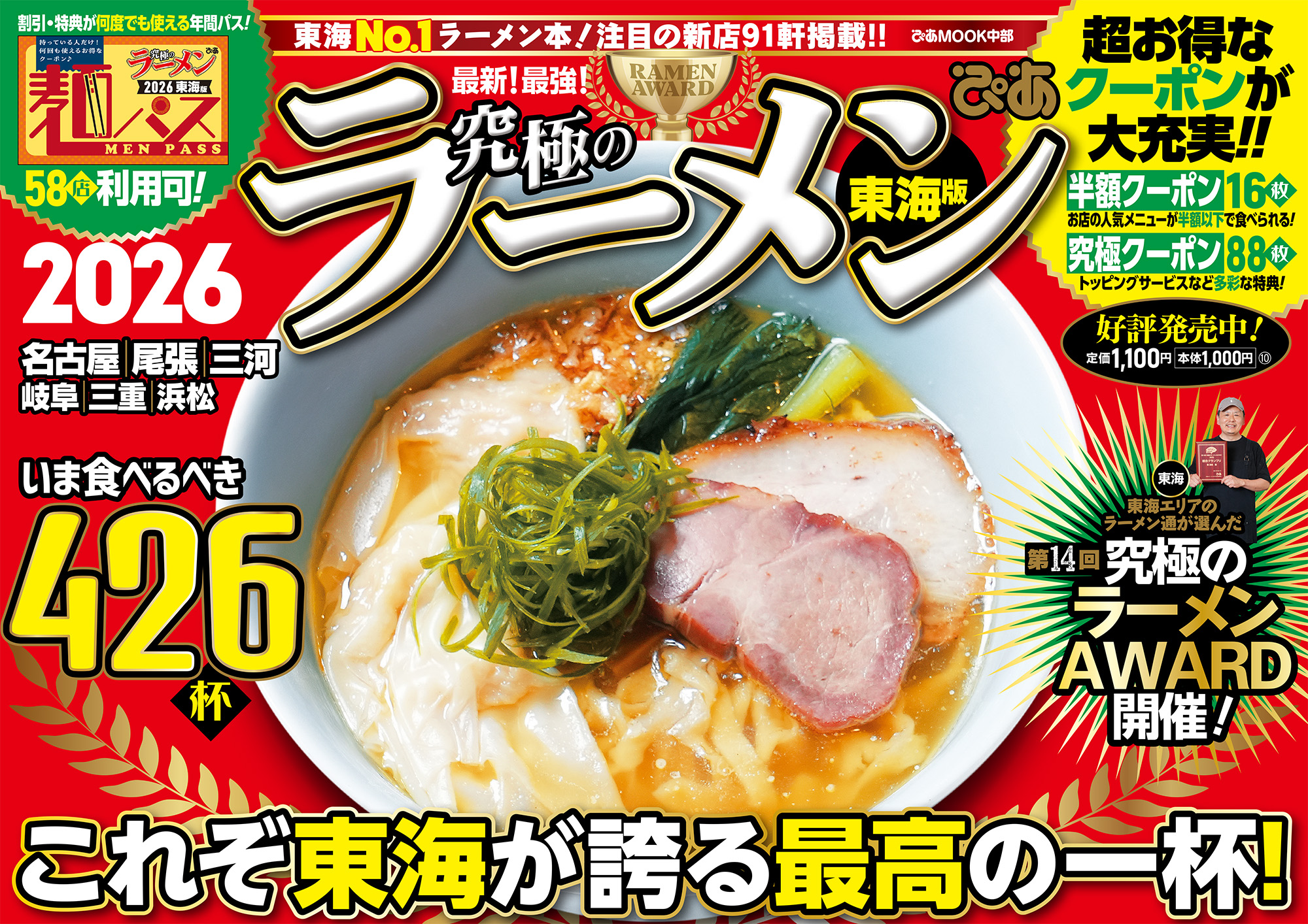名古屋・尾張・三河・岐阜・三重・浜松のブロックに分けて、今食べるべき約430杯のラーメンを掲載。