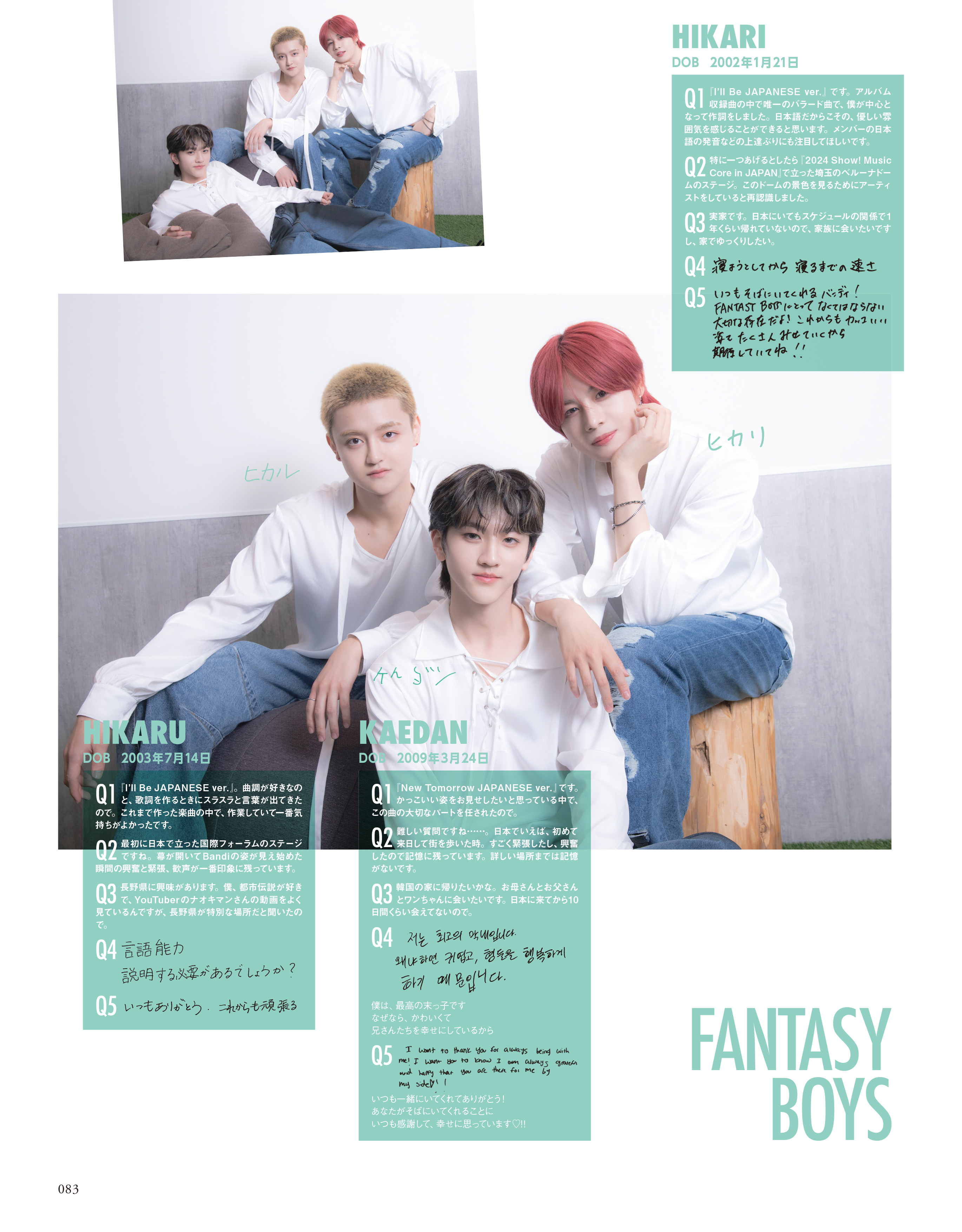 FANTASY BOYSメンバーのHikari様とHikaru様のお名前および、Q&Aを逆に掲載しておりました。